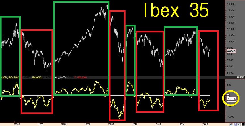 Con el MACD semanal por debajo de cero, es dificil que las cotizaciones suban.
