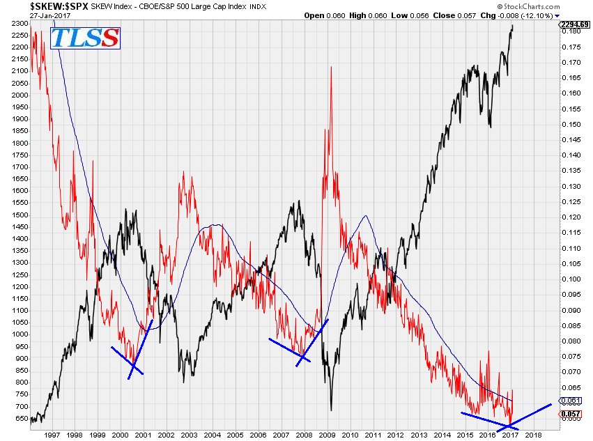 The CBOE Skew IndexSM - referred to as "SKEW" – is an option-based indicator that measures the perceived tail risk of the distribution of S&P 500® log returns at a 30- day horizon. Tail risk is the risk associated with an increase in the probability of outlier returns, returns two or more standard deviations below the mean. Think stock market crash, or black swan. This probability is negligible for a normal distribution, but can be significant for distributions which are skewed and have fat tails. As illustrated in the chart below, the distribution of S&P 500 log returns has a sizeable left tail. This makes it riskier than a normal distribution with the same mean and the same volatility. SKEW quantifies the additional risk.