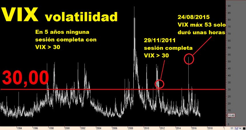 Desde los mínimos históricos de marzo 2009, se van a cumplir 8 años, ha habido pocas sesiones con alta volatilidad. Muchos jóvenes inversores no saben lo que significan jornadas con margenes de 4-5% en los índices y, éso un día tras otro.